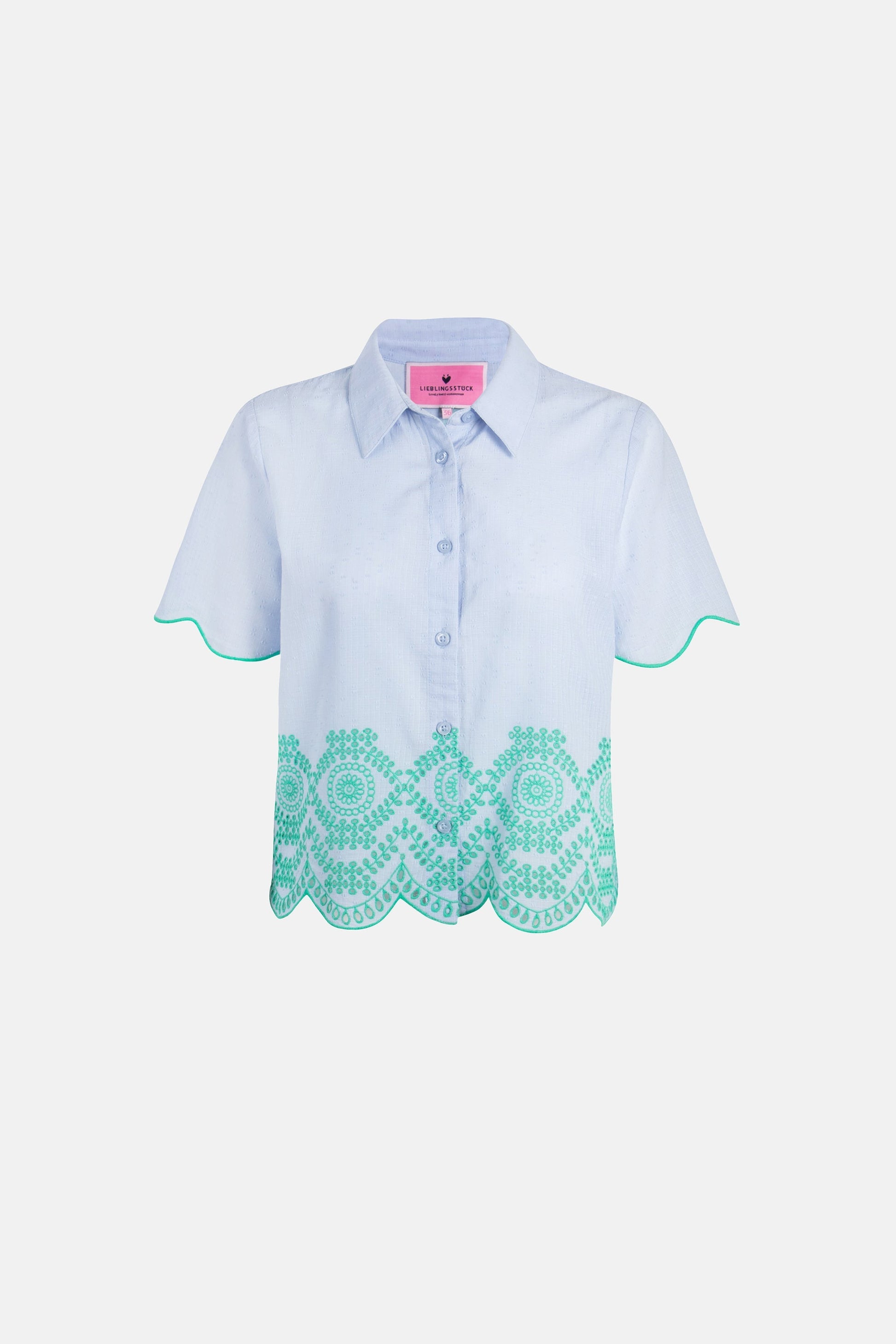 Zart, feminin und voller Charme! Diese Bluse begeistert mit einer wunderschönen Kombination aus eleganter Wellenstickerei und filigraner Lochstickerei. Der verspielte, luftige Look macht sie zum perfekten Begleiter für warme Tage – ob lässig zur Jeans oder romantisch zum Rock. Ein echtes Must-have für Deine Garderobe!